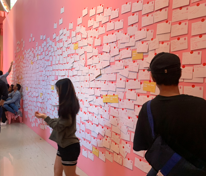 In the end, we wrote letters saying that we enjoyed the tour. Then we stuck it on the letter wall along with the others.
